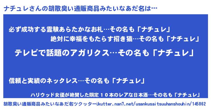 | ヘコむあだ名 | 『ナチにゅー』『ナチュレ(震え声)』 |