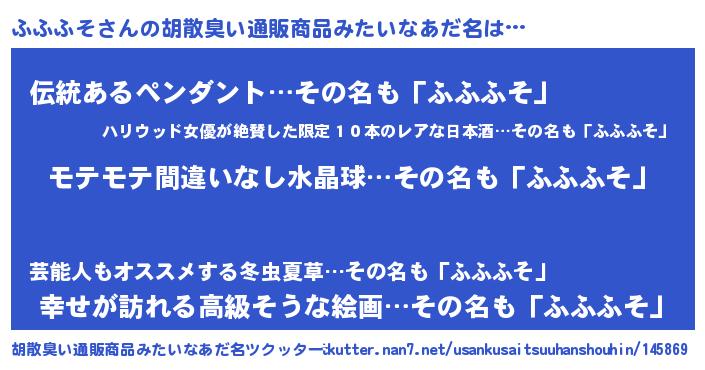 | ヒーロー風カッコイイあだ名 | 『スーパーフフフソ』『魔戒騎士フフ』 |