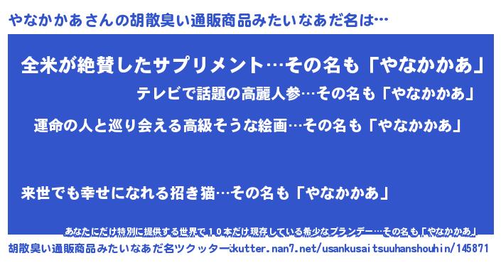 | 意味不明あだ名 | 『やなかかあフォーエバー』 |