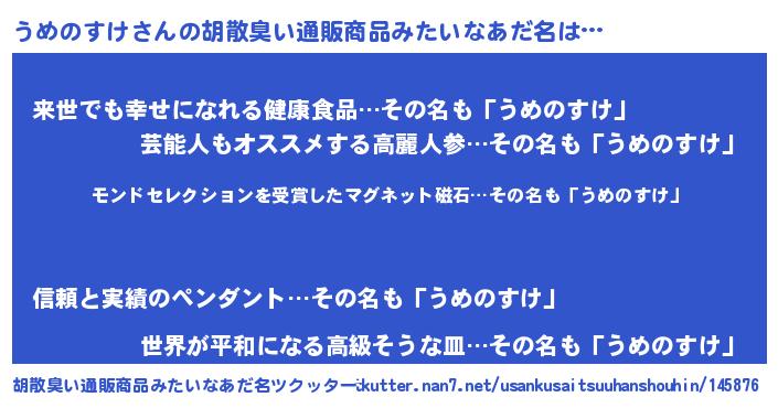 | 意味不明あだ名 | 『眠気覚ましガムうめのすけ味』 |