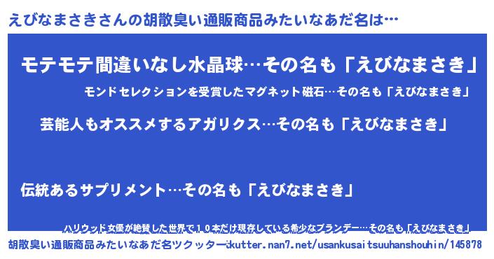 | 意味不明あだ名 | 『自称えびなまさき』 |
