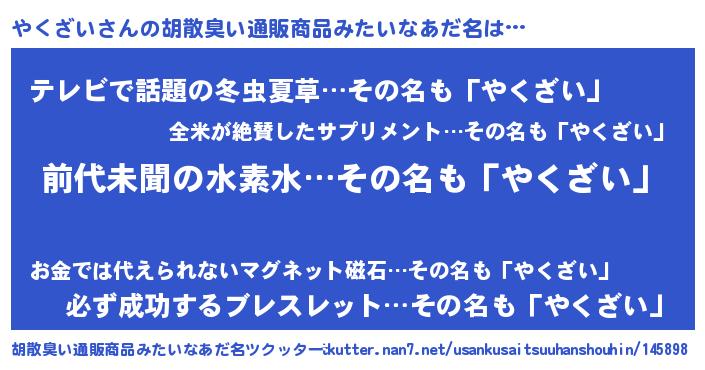 | ヒーロー風カッコイイあだ名 | 『ネオヤクザイ』『サイバー戦士ヤクザイ』 |