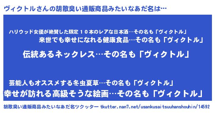 | 意味不明あだ名 | 『とにかく怪しいヴィクトル』 |