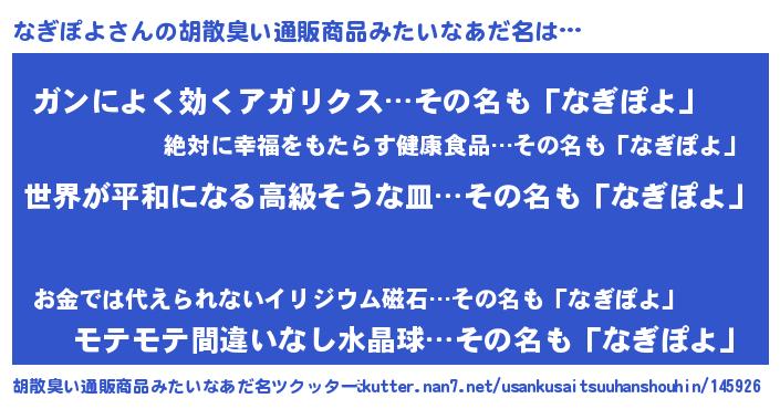| ヘコむあだ名 | 『豆乳』『なぎにゅー』『なぎを』 |