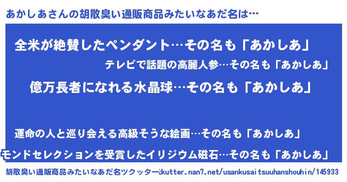 | 肩書あだ名 | 『あかしあCEO』『あかしあ中将』 |