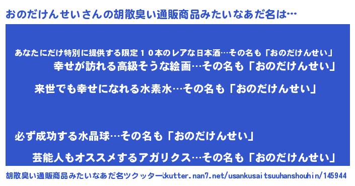 | ヘコむあだ名 | 『おのだけんせい(遠い目)』『酢こんぶ』 |