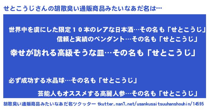 | ヘコむあだ名 | 『つくし』『せとっ子』『せとふぇ~』 |