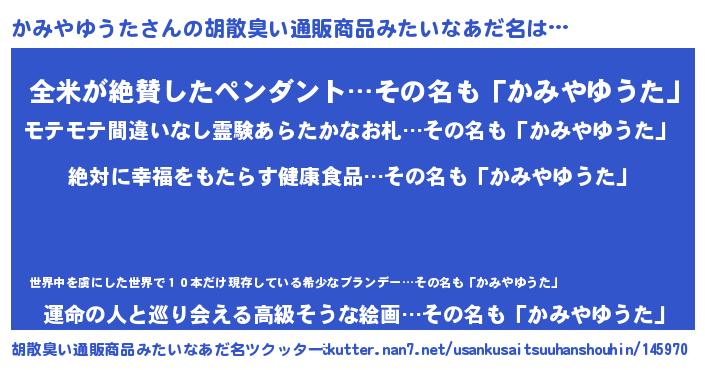 | 意味不明あだ名 | 『永久保存かみやゆうた』 |
