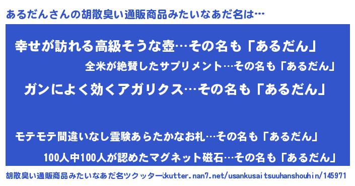 | 男性向けラノベタイトル風あだ名 | 『緋弾のアルダン』 |