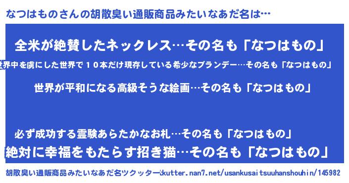 なつはものさんの胡散臭い通販商品みたいなあだ名をツクッター!