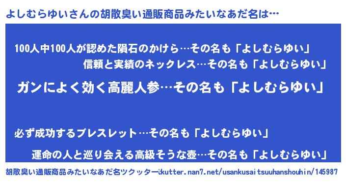 | 恥ずかしいあだ名 | 『ヨシムラユイデラックス』『よしっちょ』 |