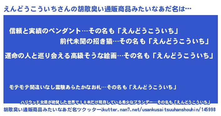 | 肩書あだ名 | 『えんどうこういち総理大臣』 |