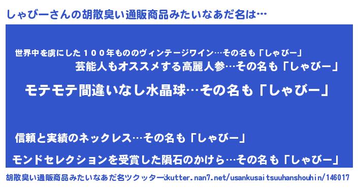 | 欧米人風あだ名 | 『マイケルしゃびー』『ダニエルしゃびー』 |