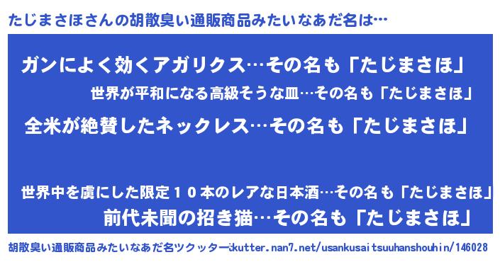 | ヘコむあだ名 | 『たじっぺ』『たじまさほ(笑)』 |