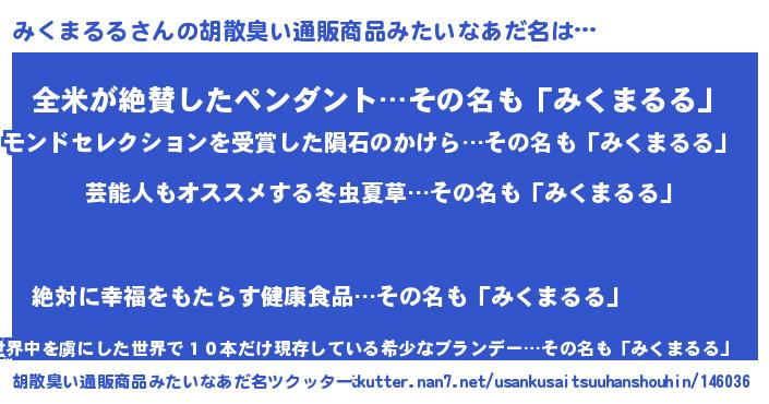 | 意味不明あだ名 | 『自称みくまるる』『永久保存みくまるる』 |