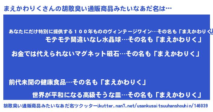 まえかわりくさんの胡散臭い通販商品みたいなあだ名をツクッター!