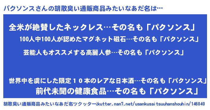 | 恥ずかしいあだ名 | 『パクソンスデラックス』『パクリンリン』 |
