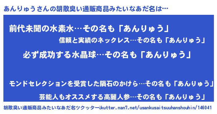 | 意味不明あだ名 | 『ペロリンあんりゅう』『自称あんりゅう』 |
