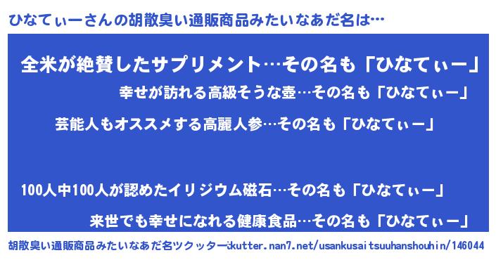 | 欧米人風あだ名 | 『ひなてぃー・ステッグマイヤー』 |