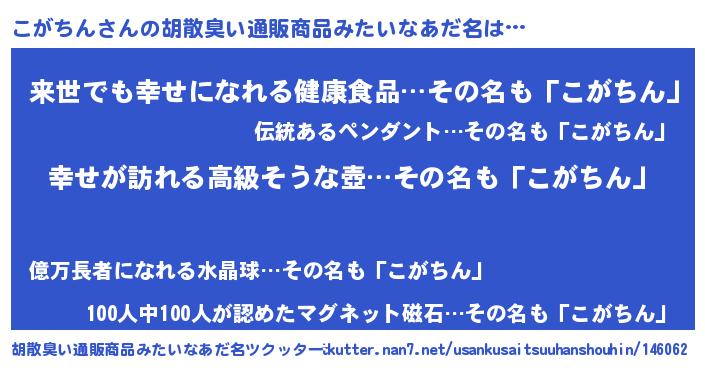 | ヒーロー風カッコイイあだ名 | 『ウルトラこがちんマン』『ネオコガチン』 |