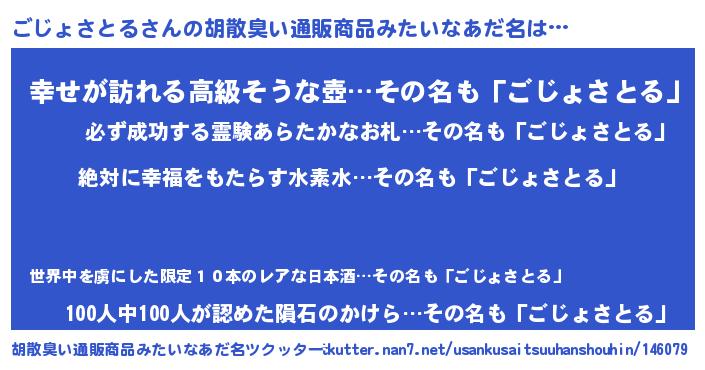 | ヘコむあだ名 | 『ごじょさとる(苦笑)』『なまこ酢』 |
