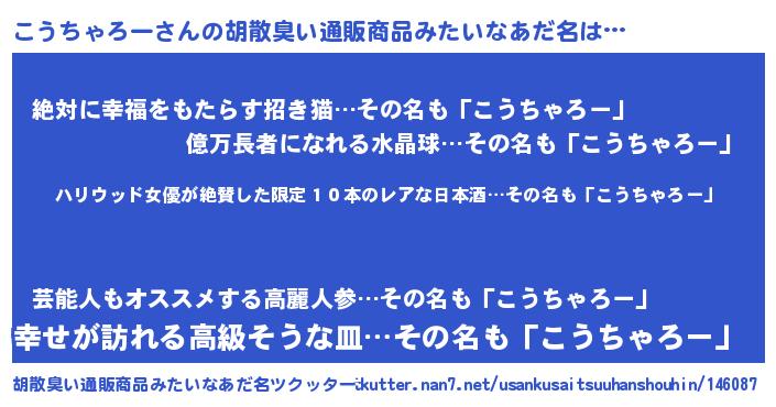 | ヒーロー風カッコイイあだ名 | 『仮面コウダー』『ネオコウチャロー』 |