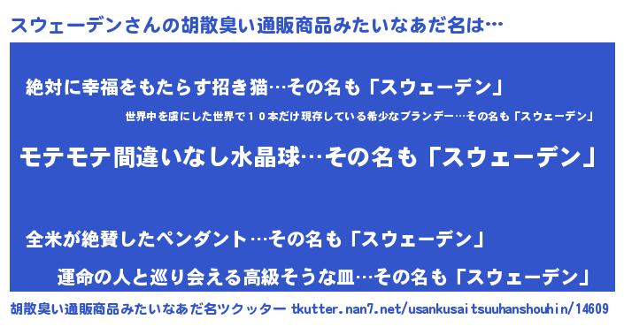 | 女子向けラノベタイトル風あだ名 | 『スウェーデン姫と円卓の騎士』 |
