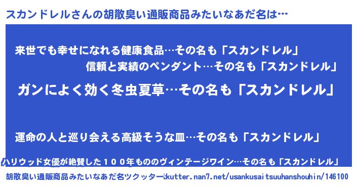 | ヘコむあだ名 | 『スカンドレル(震え声)』『スカ太郎』 |