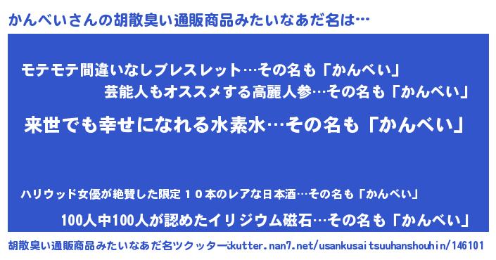 | 意味不明あだ名 | 『永久保存かんべい』『ペロリンかんべい』 |