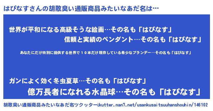 | 意味不明あだ名 | 『住所不定無職はぴなす(71歳)』 |