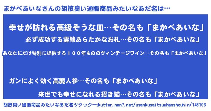 | ヘコむあだ名 | 『酢こんぶ』『まかべあいな(苦笑)』 |