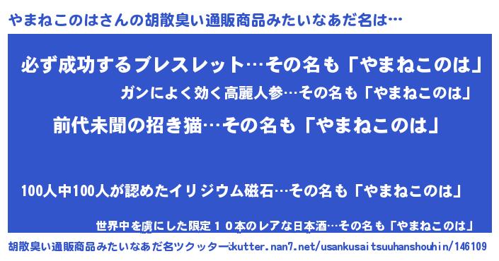 | 意味不明あだ名 | 『永久保存やまねこのは』 |