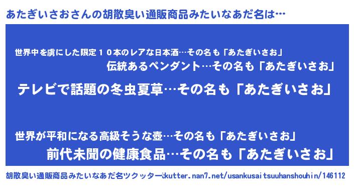 | 意味不明あだ名 | 『自称あたぎいさお』 |