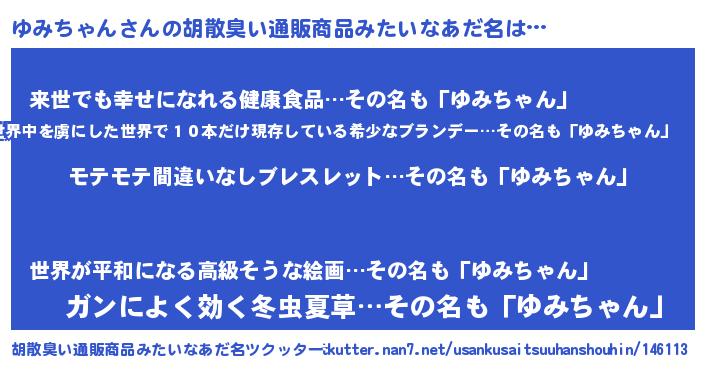 | ヒーロー風カッコイイあだ名 | 『スーパーユミチャン』『ネオユミチャン』 |