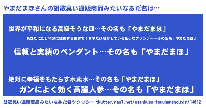 | 意味不明あだ名 | 『とにかく怪しいやまだまほ』 |