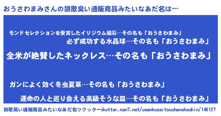 | 欧米人風あだ名 | 『ウサインおうさわまみ』 |