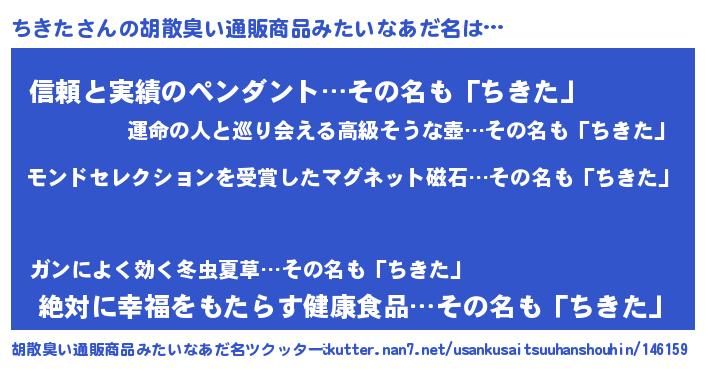 | 意味不明あだ名 | 『眠気覚ましガムちきた味』『自称ちきた』 |