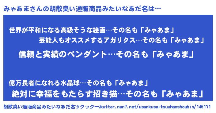 | 意味不明あだ名 | 『とにかく怪しいみゃあま』 |