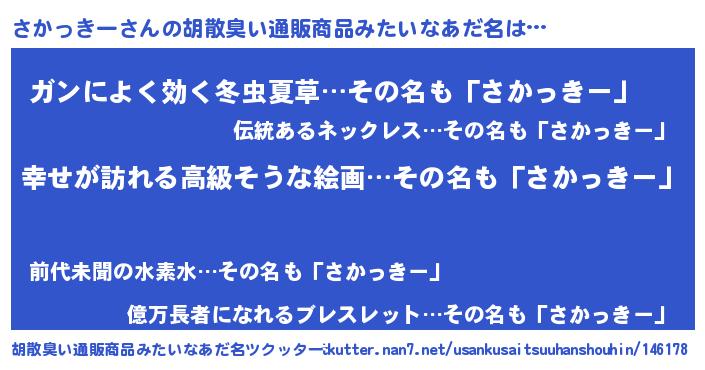 | 男性向けラノベタイトル風あだ名 | 『やはりさかっきーの青春ラブコメはまちがっている 』 |