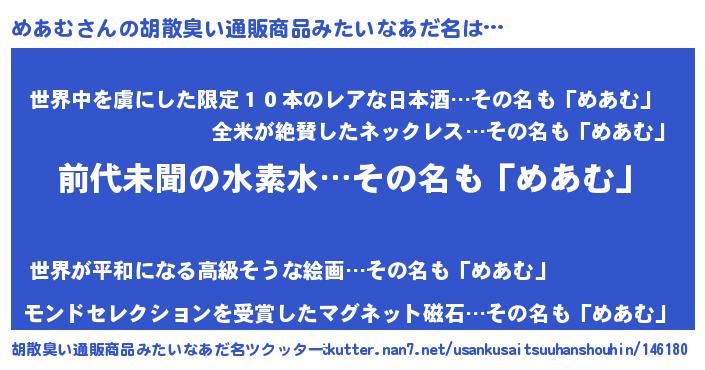 | 意味不明あだ名 | 『ヨモギ科めあむ属』『永久保存めあむ』 |
