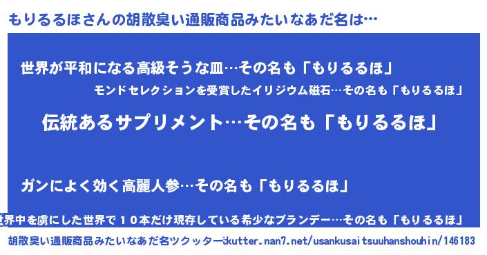 | 意味不明あだ名 | 『とにかく怪しいもりるるほ』 |