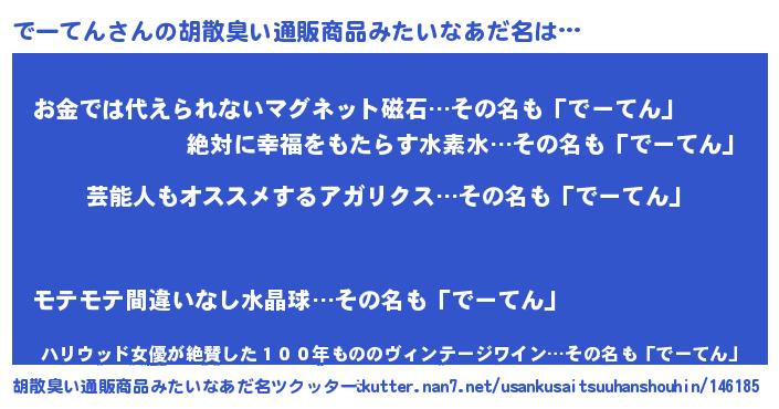 | 意味不明あだ名 | 『自称でーてん』『永久保存でーてん』 |