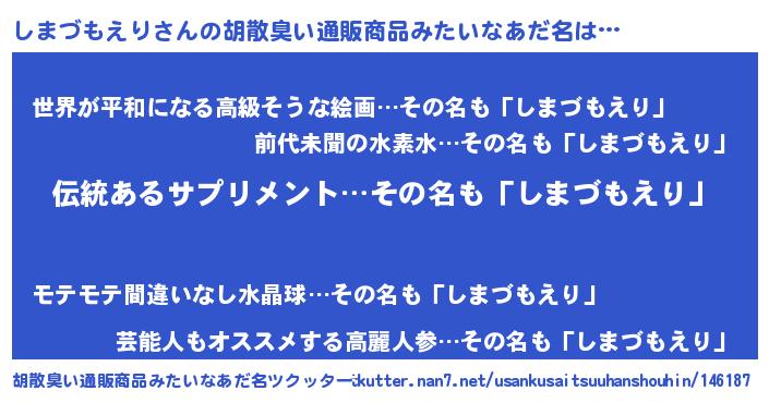 | 意味不明あだ名 | 『とにかく怪しいしまづもえり』 |