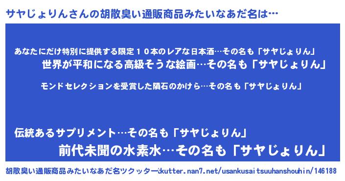 | ヘコむあだ名 | 『サヤじょりん(苦笑)』『レバニラ』 |