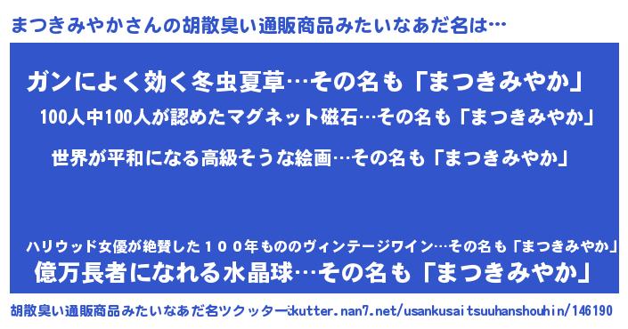 | 肩書あだ名 | 『まつきみやか総理大臣』 |