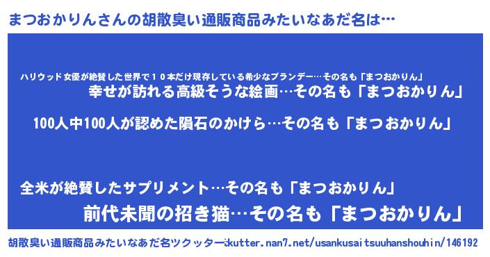 | 男性向けラノベタイトル風あだ名 | 『マツオカリンスレイヤー』 |