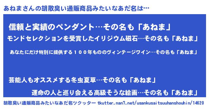 | ヘコむあだ名 | 『あねを』『牛乳』『あねま(小並感)』 |