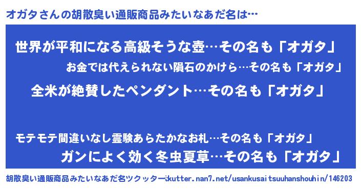 | ヘコむあだ名 | 『オガぷりん』『酢こんぶ』 |