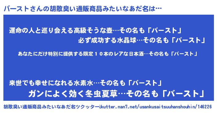 | 意味不明あだ名 | 『住所不定無職バースト(40歳)』 |