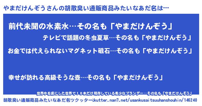 | 女子向けラノベタイトル風あだ名 | 『やまだけんぞう恋絵巻』 |